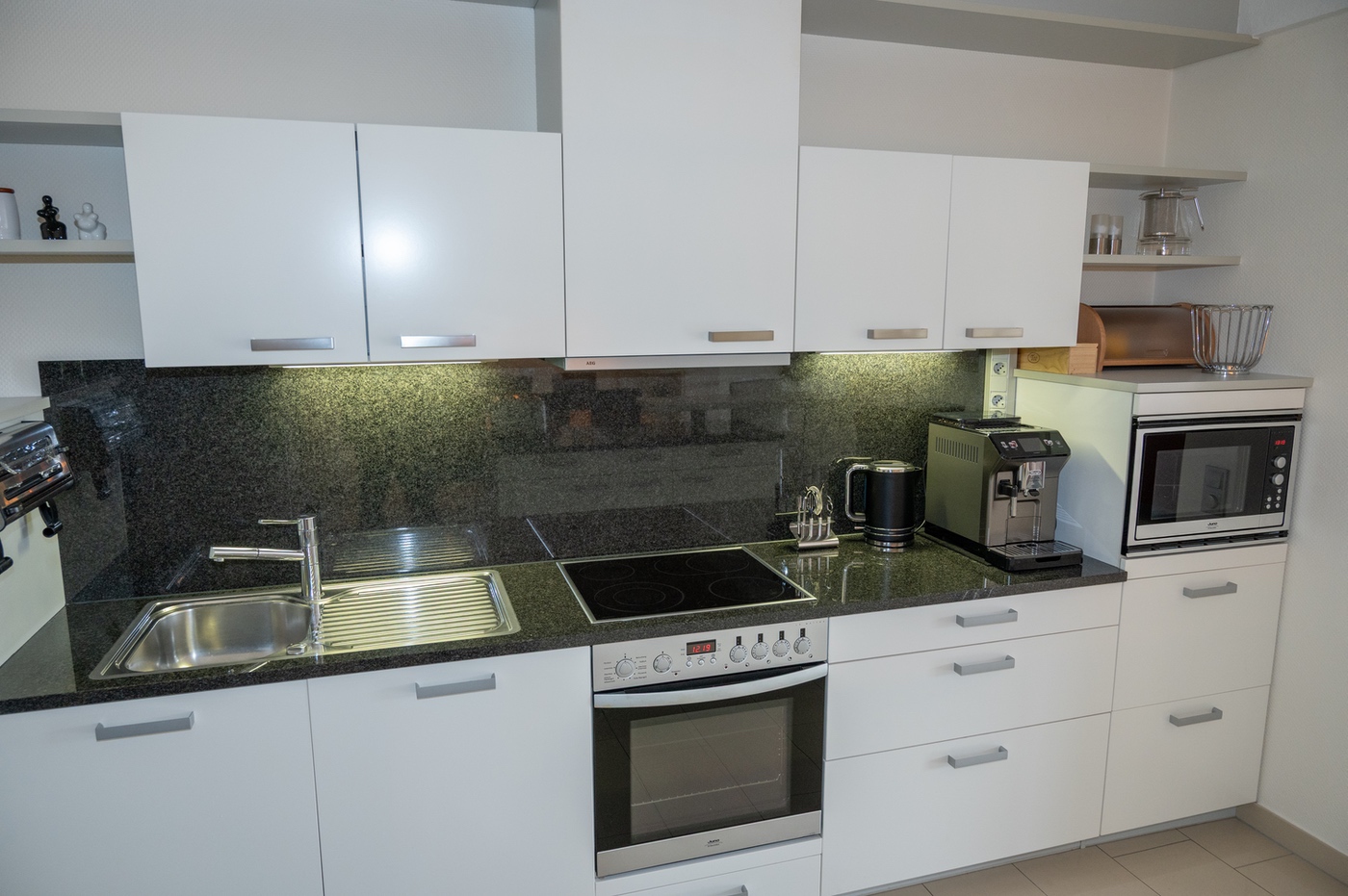 Im Preis enthalten sind auch ein Kinderbett und ein Hochstuhl. Eine eigene Waschmaschine und Trockner sind vorhanden.