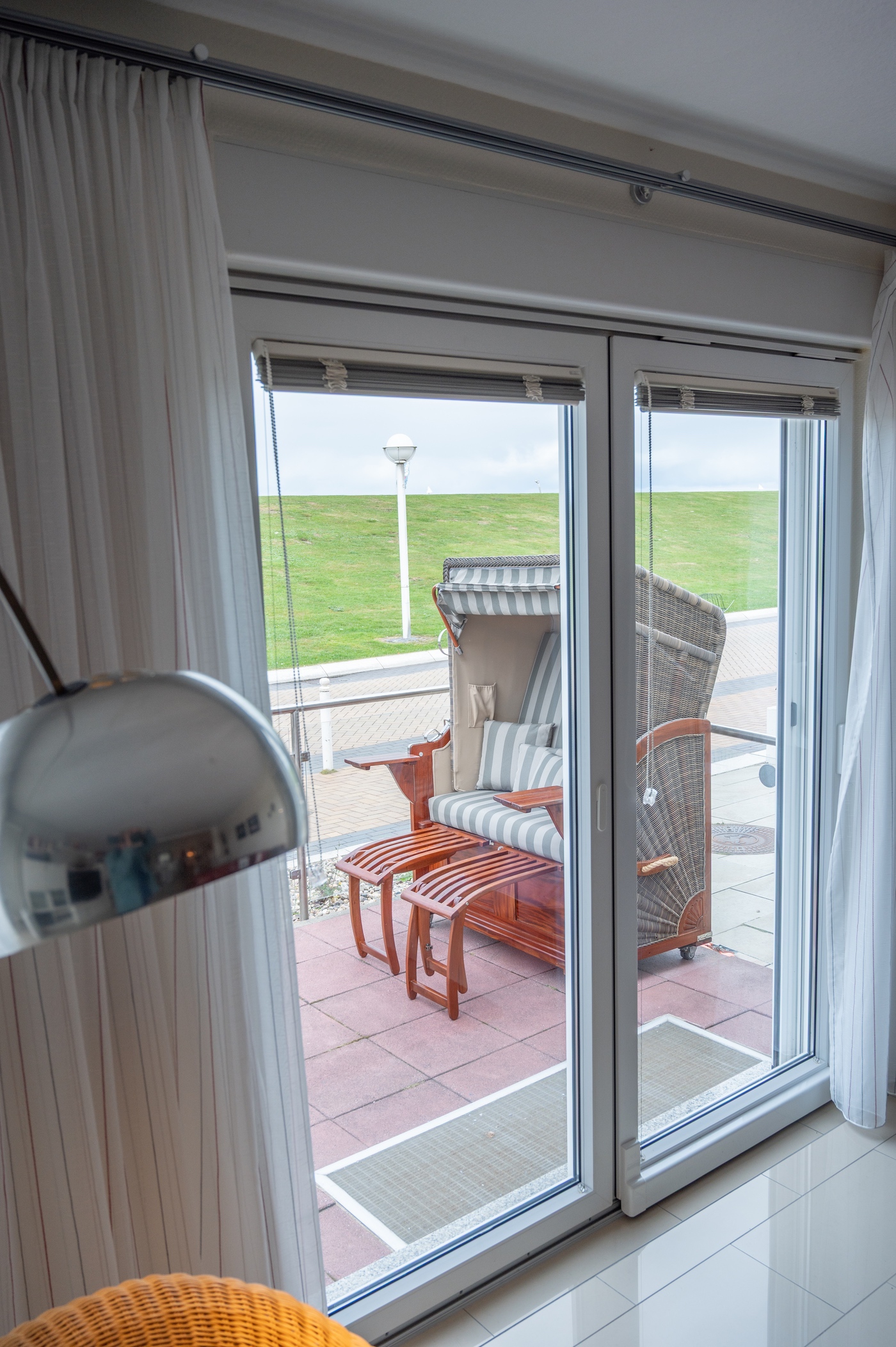Die beiden Schlafräume sind ausgestattet jeweils mit einem Doppelbett und einem Flachbildschirm. (Meeresrauschen inclusive) Offene und gut ausgestattete Küche mit einer Mittelinsel, von beiden Seiten begehbar. Hier befindet sich ein Side by Side Kühlschrank mit einem Eiswürfel-und Frischwasserbereiter. Ebenerdige Terrasse mit Gartenmöbeln mit Auflagen und einem Strandkorb. Im Wohnbereich befindet sich ein großes Ecksofa, sowie ein Flachbildschirm von Loewe.