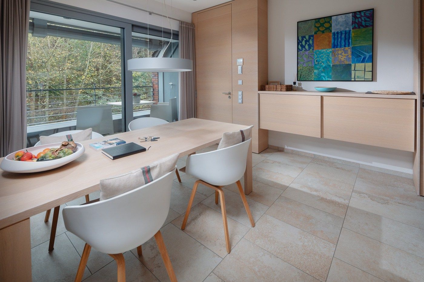 Telefondurchwahl und Klingel mit Gegensprechanlage, sowie einem Safe für jedes Zimmer. Eine hochwertige vollausgestattete Küche mit Miele-Geräten sowie einem großen Esstisch im Essbereich lässt keine Wünsche offen. Geschirrspüler, Backofen und Mikrowelle sind selbstverständlich vorhanden. Auf der Loggia sorgen ein zusätzlicher Essplatz und bequeme Relax-Liegen für pure Entspannung. Dank bodentiefer Fenster schweift der Blick vom Wohnbereich in den großzügigen sehr gemütlich angelegten Garten, sowie in das angrenzende Wäldchen. Diese Wohnung verfügt über eine komplette Fußbodenheizung und jeder Raum ist zusätzlich mit einer Klimaanlage ausgestattet.